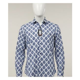 1. Men's white and navy Sanganeri print cotton slim fit shirt India