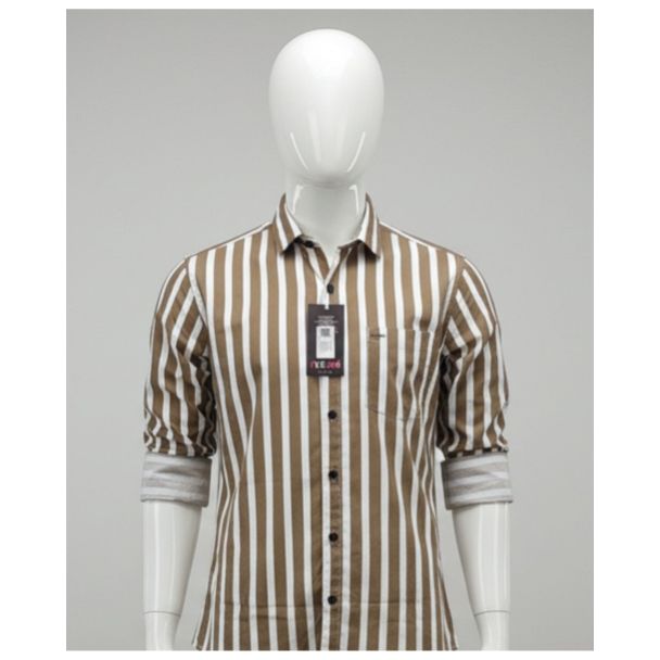 Elevate your casual wardrobe with this stylish men's shirt, featuring a classic brown and white vertical stripe pattern. Crafted from comfortable cotton, this shirt is designed for everyday wear and offers a versatile look suitable for various occasions. Its breathable fabric ensures all-day comfort, making it a go-to choice for the modern man.