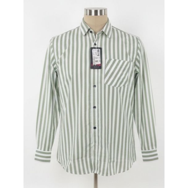 Men's Green & White Striped Cotton Shirt Full Sleeve