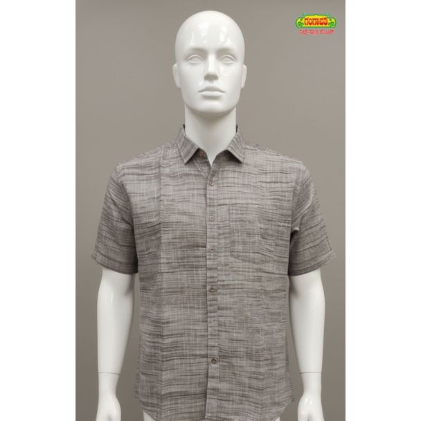 Mens Grey Textured Cotton Shirt Half Sleeve Casual Wear