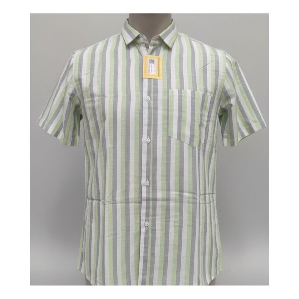 This Men's Light Green Striped Cotton Half Sleeve Casual Shirt is the perfect addition to any modern wardrobe. Designed for men who value both style and comfort, this shirt features a refreshing color palette of light green, grey, and white vertical stripes. It serves as an essential piece for summer fashion, keeping you cool while looking sharp at the office or during weekend outings across India.