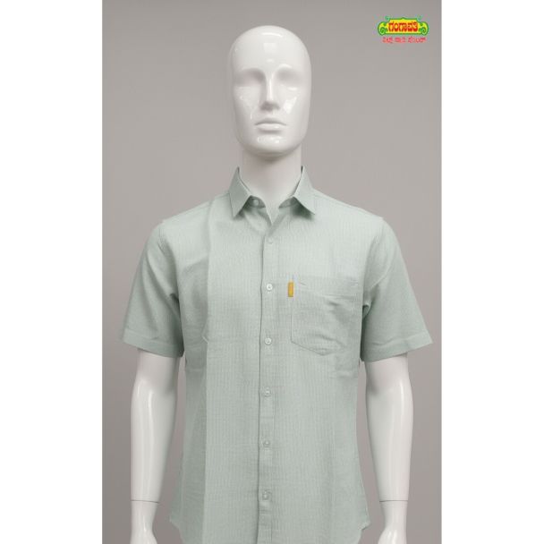 Mens Pastel Green Cotton Half Sleeve Formal Shirt