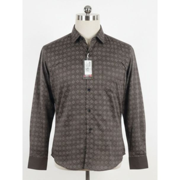 Men's Patterned Coffee Brown Cotton Full Sleeve Shirt