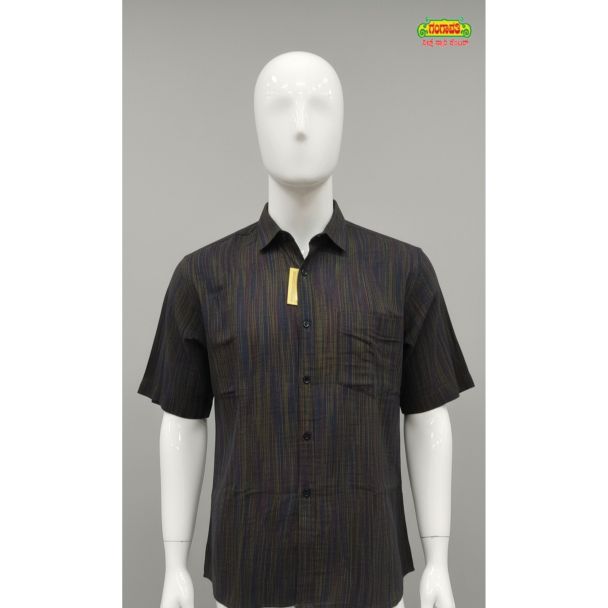 Elevate your everyday style with this comfortable and budget-friendly men's black cotton shirt. Designed for daily wear, it features a classic button-down style with short sleeves and a subtle yet stylish vertical stripe pattern. This shirt is an essential addition to any casual wardrobe, offering both ease and a refined look.