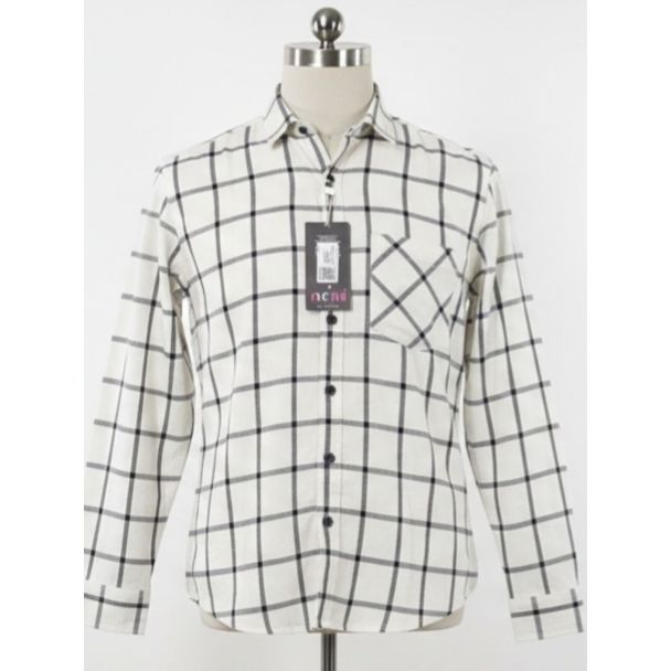 Men's White & Black Checkered Cotton Shirt Full Sleeve