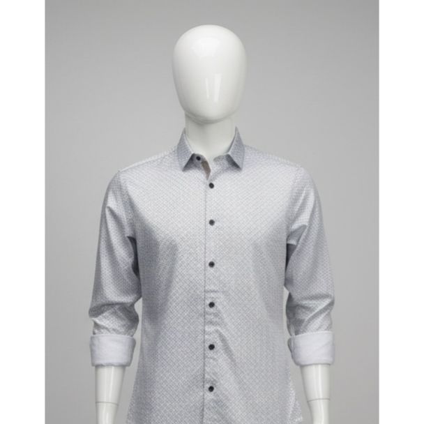 This men's casual shirt offers a stylish and comfortable option for everyday wear. The subtle geometric pattern adds a touch of sophistication, making it suitable for various casual occasions. It's a versatile piece that can be dressed up or down to suit your personal style.