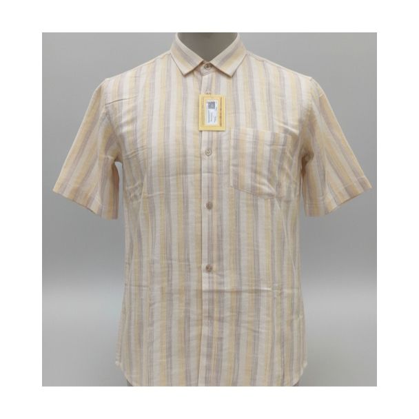 Men's Yellow White Striped Cotton Shirt Half Sleeve
