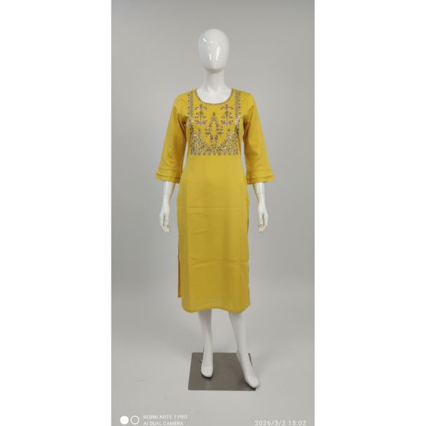 Why Buy This Product? This mustard yellow kurti strikes the perfect balance between modesty and modern style, offered at a highly accessible price point. The rich color combined with detailed embroidery ensures you look put-together without compromising on the breathability of pure cotton fabric. It’s a versatile essential for any ethnic collection.