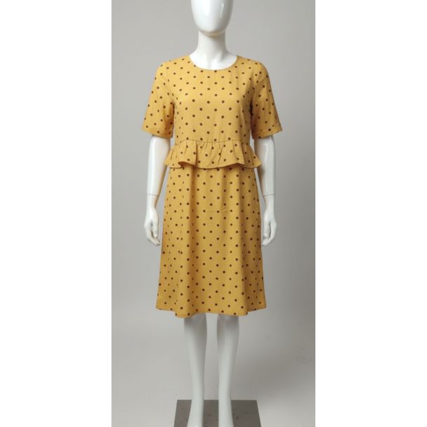 Elevate your wardrobe with this stylish mustard yellow polka dot dress. Perfect for the modern woman, this dress is designed to make a statement. Its vibrant color and playful polka dot pattern exude a sense of fun and sophistication. This dress is ideal for parties and other occasional wear, designed for those who appreciate both comfort and style. The mid-range price point offers quality and design, making it a valuable addition to your collection.