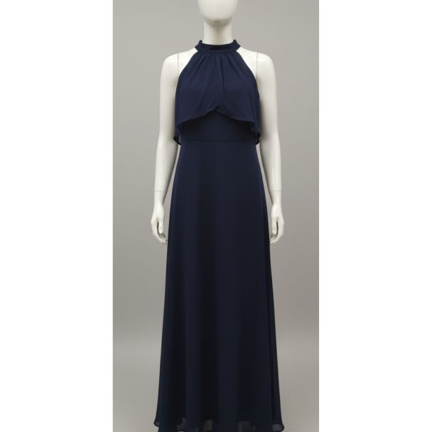 Elegant Navy Blue Chiffon Halter Neck Maxi Dress for Occasions
