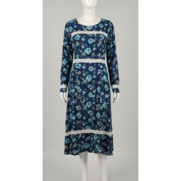 - Neckline: A neat round neckline with a white lace trim, adding a touch of subtle elegance and complementing the overall design.