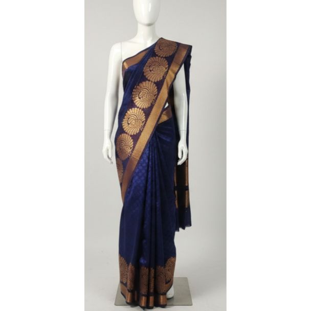 Navy Blue & Gold Woven Cotton Saree with Border