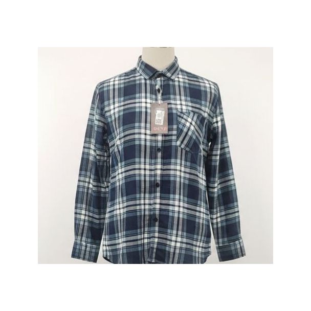 This shirt features a soft, textured flannel fabric in navy blue and white plaid. The long sleeves have buttoned cuffs, while the classic collar and button-down front create a timeless look. Crafted with attention to detail. Available at Gangavathiexports with exceptional quality and unbeatable pricing.