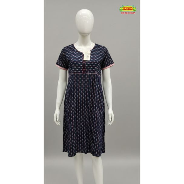 Order Now: Invest in quality sleepwear that respects your budget. This navy printed cotton nighty promises superior wearability and durability essential for frequent use. Experience the difference of comfortable, dependable sleepwear today. This item is available at a highly accessible price point directly from Gangavathi Exports, Davangere.