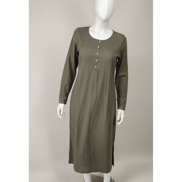 Olive Green Cotton Kurti Full Sleeve A-Line Party Wear