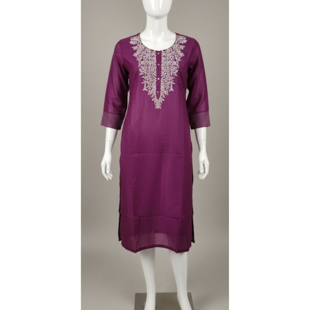 Orchid Purple Embroidered Kurti 3/4 Sleeve Casual