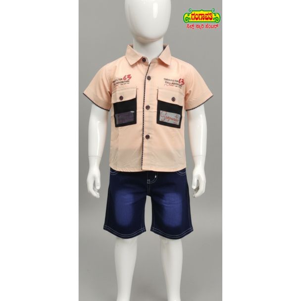 Order Now: Elevate your child's wardrobe with this delightful peach and navy blue shirt and shorts set. Experience the perfect combination of style, comfort, and affordability. This budget-friendly outfit is available now, and ready to ship to your doorstep, brought to you from Gangavathi Exports, Davangere
