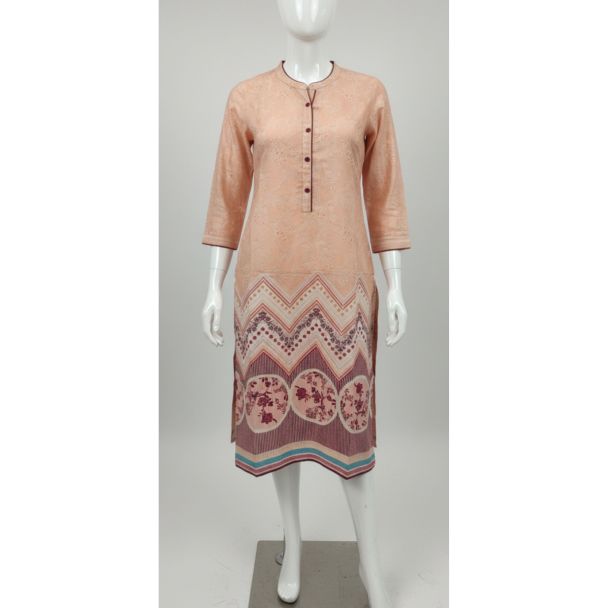 Peach Printed Cotton Kurti with 3/4 Sleeves