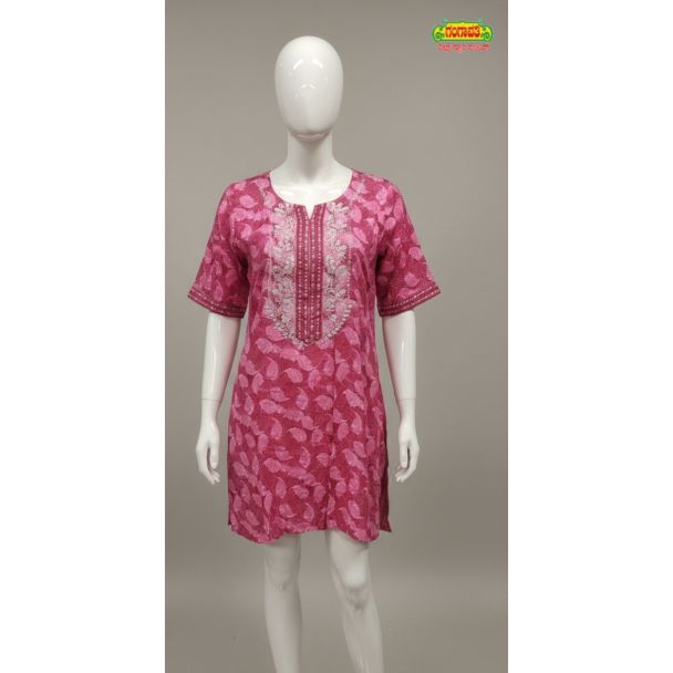 Why Buy This Product? This pink cotton kurti is a versatile addition to any wardrobe, offering a perfect balance of comfort, style, and traditional charm. The intricate embroidery and appealing leaf print make it a visually attractive choice for casual occasions, ensuring you look chic and feel comfortable throughout the day.