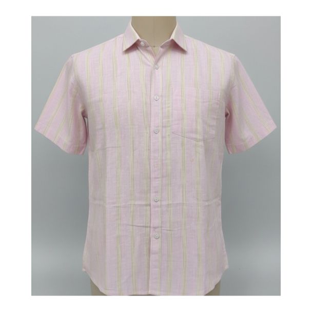 Elevate your casual wardrobe with this classic men's shirt. Crafted from breathable cotton, it features a subtle yet stylish pattern of alternating pink and pale yellow vertical stripes. Designed for comfort and everyday wear, this shirt is a versatile addition to any man's closet.