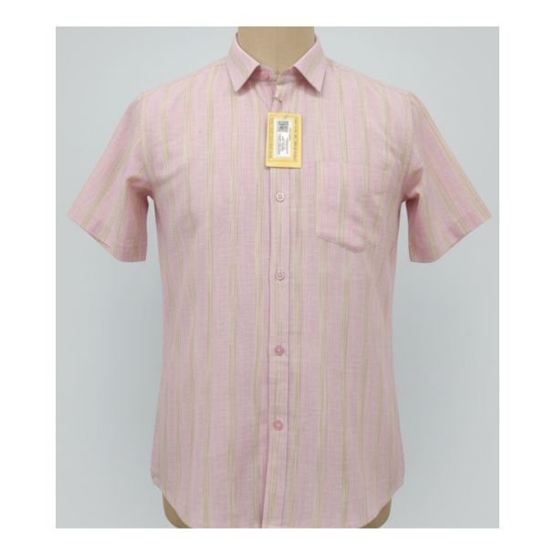 Discover ultimate comfort and casual style with this men's pure cotton shirt. Designed for daily wear, its soft fabric and breathable construction make it a perfect choice for the Indian climate. The refreshing pink hue combined with subtle vertical stripes offers a classic yet contemporary look.