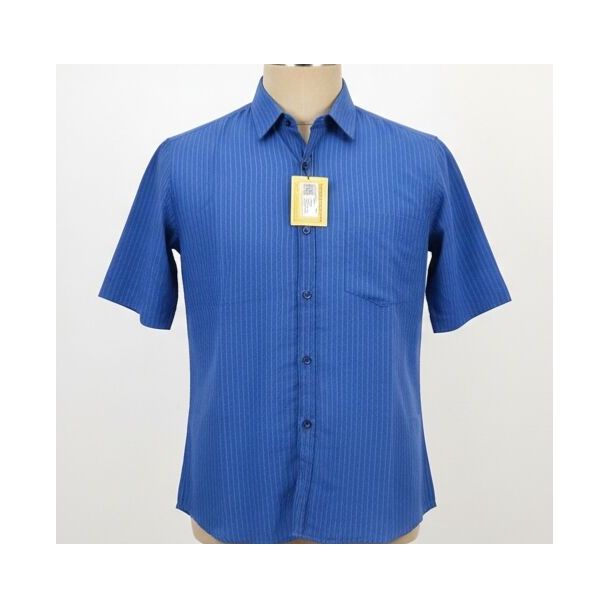 A royal blue shirt with subtle vertical stripes, short sleeves, and a classic collar. Perfect for a casual yet refined look.