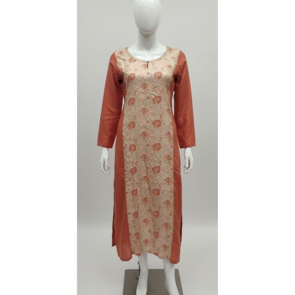 Why Buy This Product? This budget-friendly Kurti brilliantly balances aesthetic appeal and affordability. The unique color-blocked design draws the eye vertically, offering a slimming effect. The durable cotton blend ensures it remains a staple in your ethnic collection for multiple seasons, providing great style mileage for minimal investment.