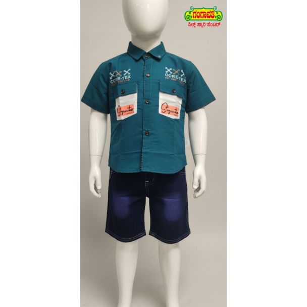 Order Now: Elevate your child's wardrobe with this stylish Teal Blue shirt and denim shorts set. Enjoy quality and style at an affordable price, ensuring your little one always looks their best. Add this versatile set to your cart today and let your child experience comfort and confidence, all while staying within your budget. Get yours now, exclusively from Gangavathi Exports, Davangere.