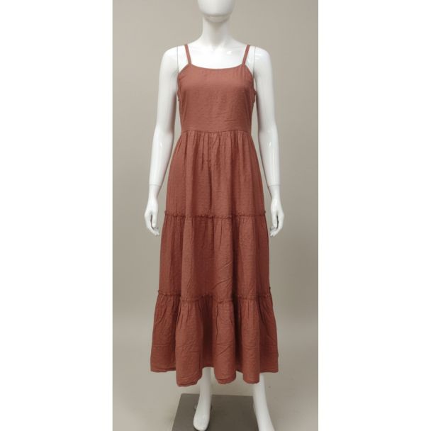 Why Buy This Product? This terracotta tiered maxi dress offers a blend of comfort and chic style. Its breathable fabric and relaxed fit make it perfect for all-day wear, while the elegant tiered design and rich color ensure you look stylish for any occasion. It's a versatile piece that offers great value.