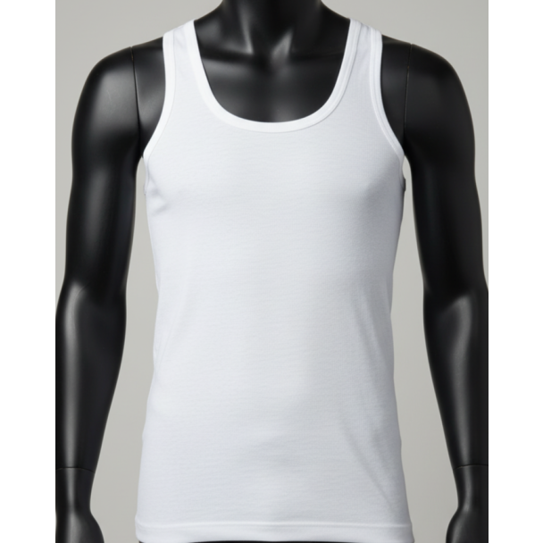 Premium quality 85cm men's cotton banian (vest) perfect for small to medium build. This sleeveless vest is made from 100% combed cotton, ideal for daily wear as comfortable innerwear under shirts. Factory-direct wholesale pricing.