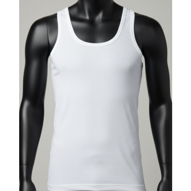 White Cotton Mens Vest Sleeveless Round Neck Fitted 100 Cms
