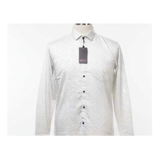 Classic white cotton shirt featuring a subtle all-over grey dotted print and full sleeves.