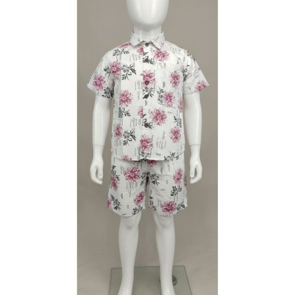 White Floral Print Kids' Cotton Shirt & Shorts Set