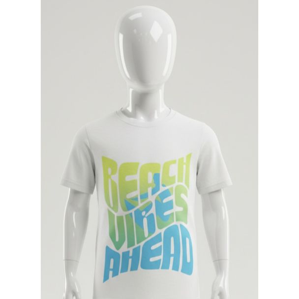 Get your little one ready for fun with this adorable white cotton t-shirt. Perfect for everyday wear, this t-shirt is designed to bring a touch of summer fun to any kid's wardrobe. The bold, playful graphic that says "Beach Vibes Ahead" adds a cheerful touch. This t-shirt is budget-friendly, making it an excellent choice for parents looking for quality clothing at an exceptional price.