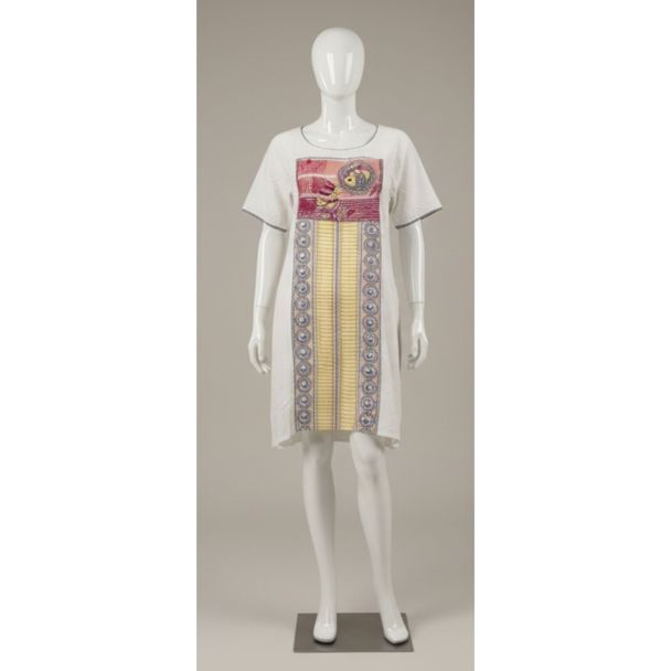 White Short Sleeve Printed Tunic Dress Knee Length