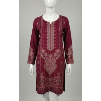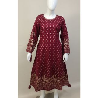 Burgundy Printed Cotton Silk Finish Kurti Full Sleeve A-LineAs low as ₹240.00 Regular Price ₹480.00