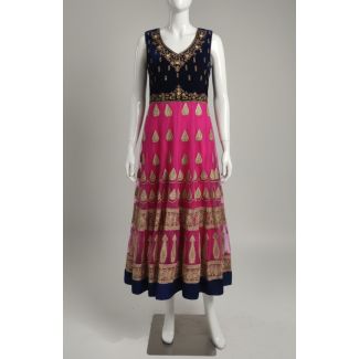 Navy Blue Pink Embroidered Sleeveless Anarkali