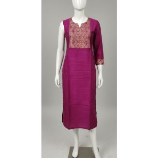 Mauve Embroidered Silk Blend Long Kurti 3/4 Sleeve
