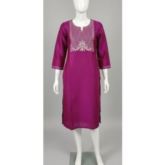 Orchid Purple Embroidered Kurti 3/4 Sleeve Casual