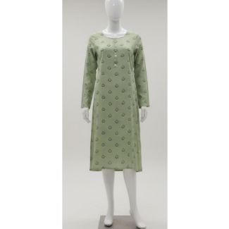 Sage Green Floral Print Rayon Kurti Full Sleeve