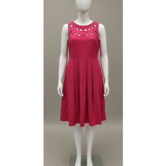 1. Sleeveless pink fit and flare dress with laser cut neckline