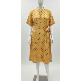 Yellow Polka Dot Cotton Dress 3/4 Sleeve