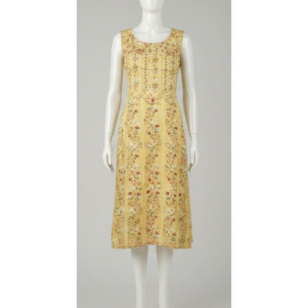 Yellow Floral Sleeveless A-Line Midi Dress